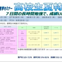 夏期講習のチラシができました! 7月21日より、夏期講習スタート! (予約受付中!定員に関しては校舎にお問い合わせください) 夏は入試の天王山と言われ、受験生である3年生にとっては、 この夏の過ごし方が結果を大きく左右す …